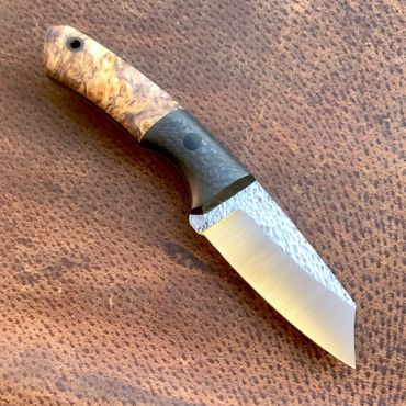 A bolstered or segmented handle is dovetailed and adds extra character to a knife.