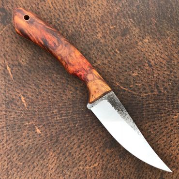 The Raptor was designed to be a game processing knife. It can handle small to large game. It makes an excellent bird and trout knife as well as holding its own on big game. The design also lends to a great EDC knife with offensive and defensive capability. It has an overall length of 8 3/16" with a 4 1/8" blade.